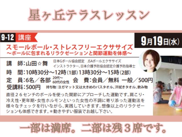 9月19日名古屋星ヶ丘テラスレッスン残り3席です。