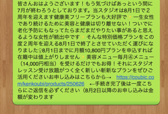 今日、早朝にLINE@会員様に向けたメッセージを 試行錯誤しながら作ったのに、 なんだか投稿回数不足という理由で、 全く・・・
